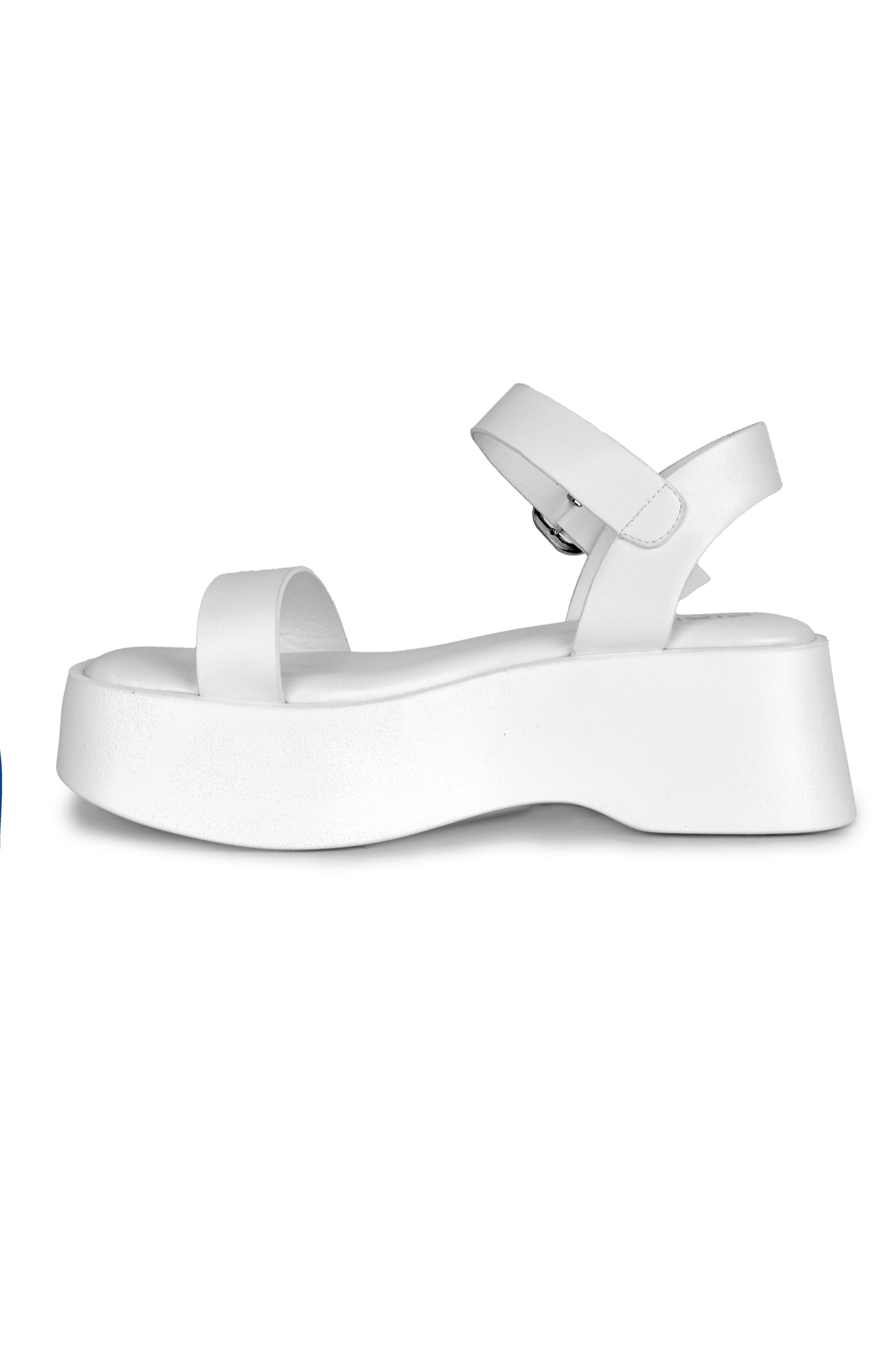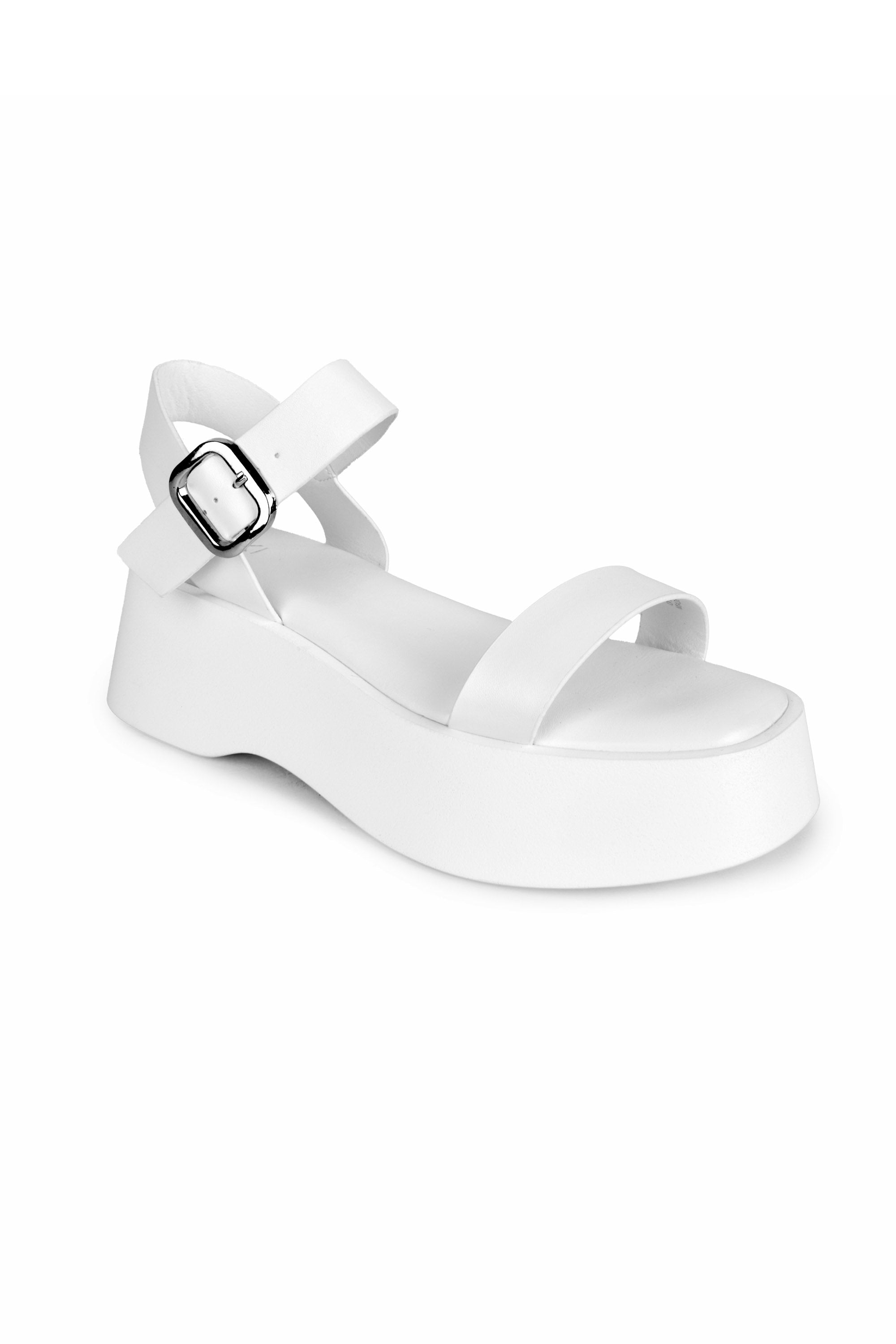 Code No.: 01-5249 Wedge leather sandal, round open toecap , buckle closure , wedge heel measures around 5 cm