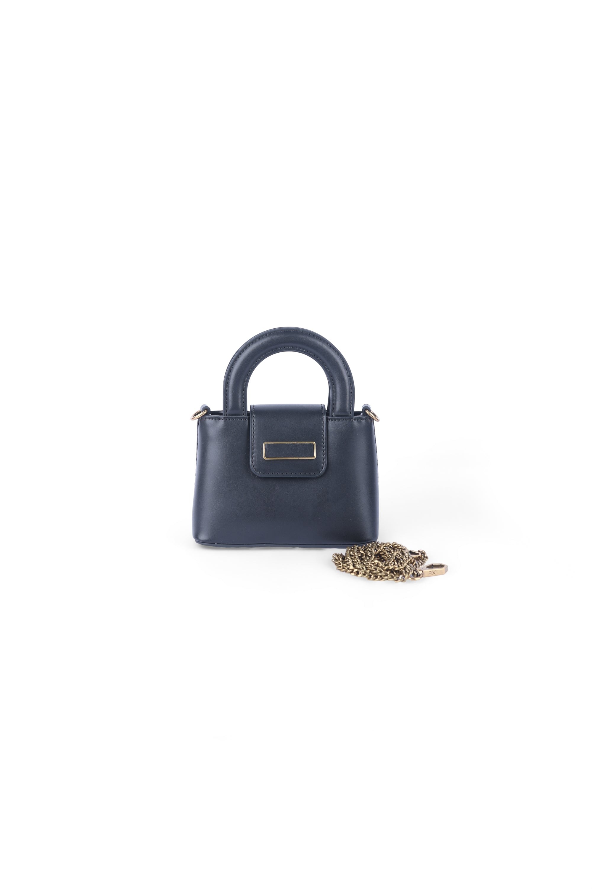 Code No.:025648 Hand Bag mini sized ,in PU leather material ,Zip Closure , Extra long chain strap that can also be used as crossbody bag ,dimensions 15*6.5*10.5