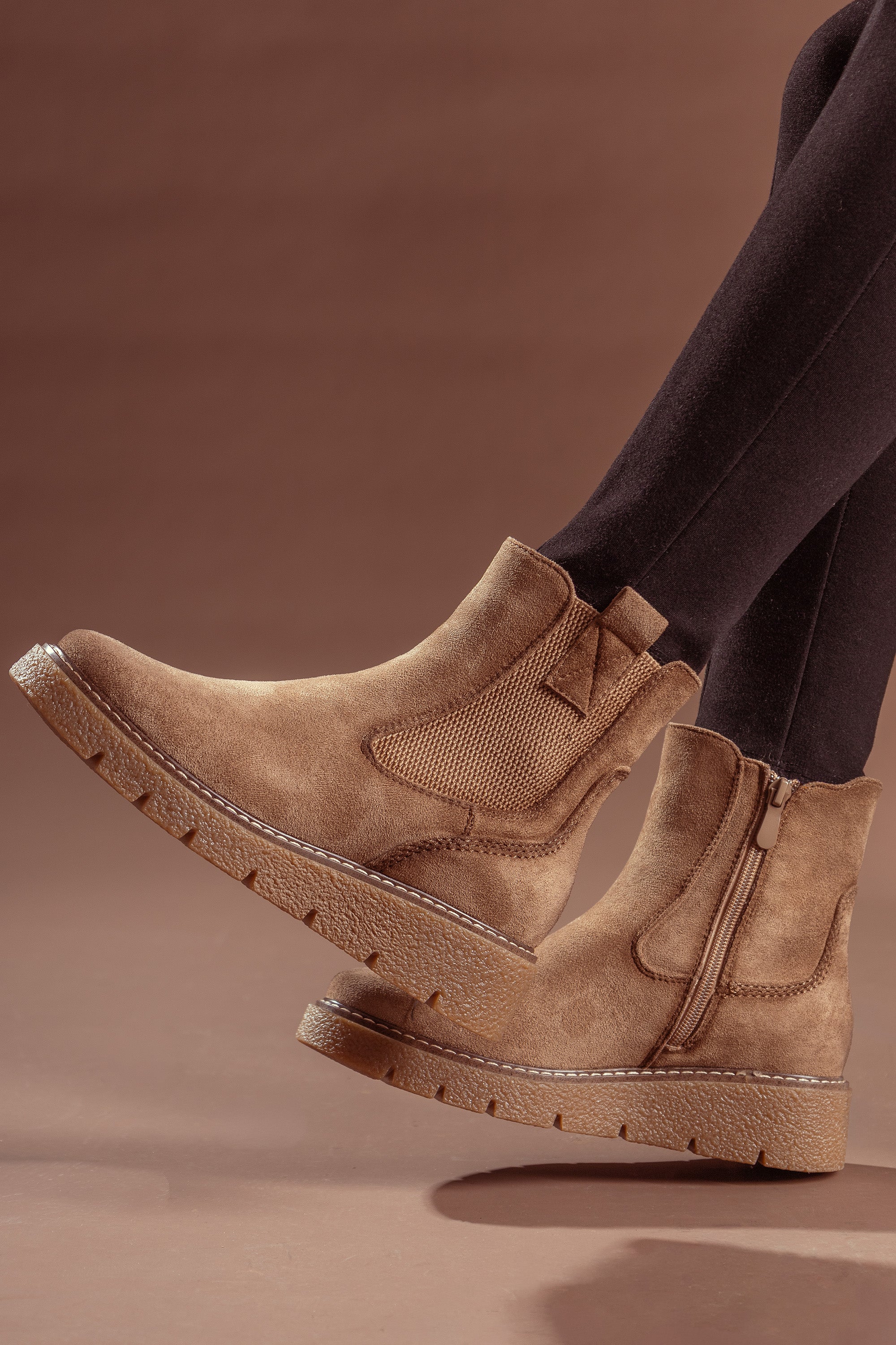 Code No.:01-5561 Suede Ankle boot Stretch elastic panel at the side for easy on and off , Side Strap, Round Toe