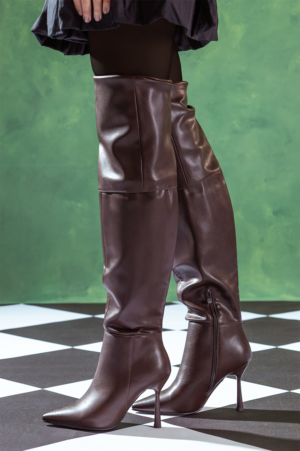 Code No.:01-5572 Goolita Fold Over long Boots For Women, Pointed Toe Stiletto Heel measures around 8 cm