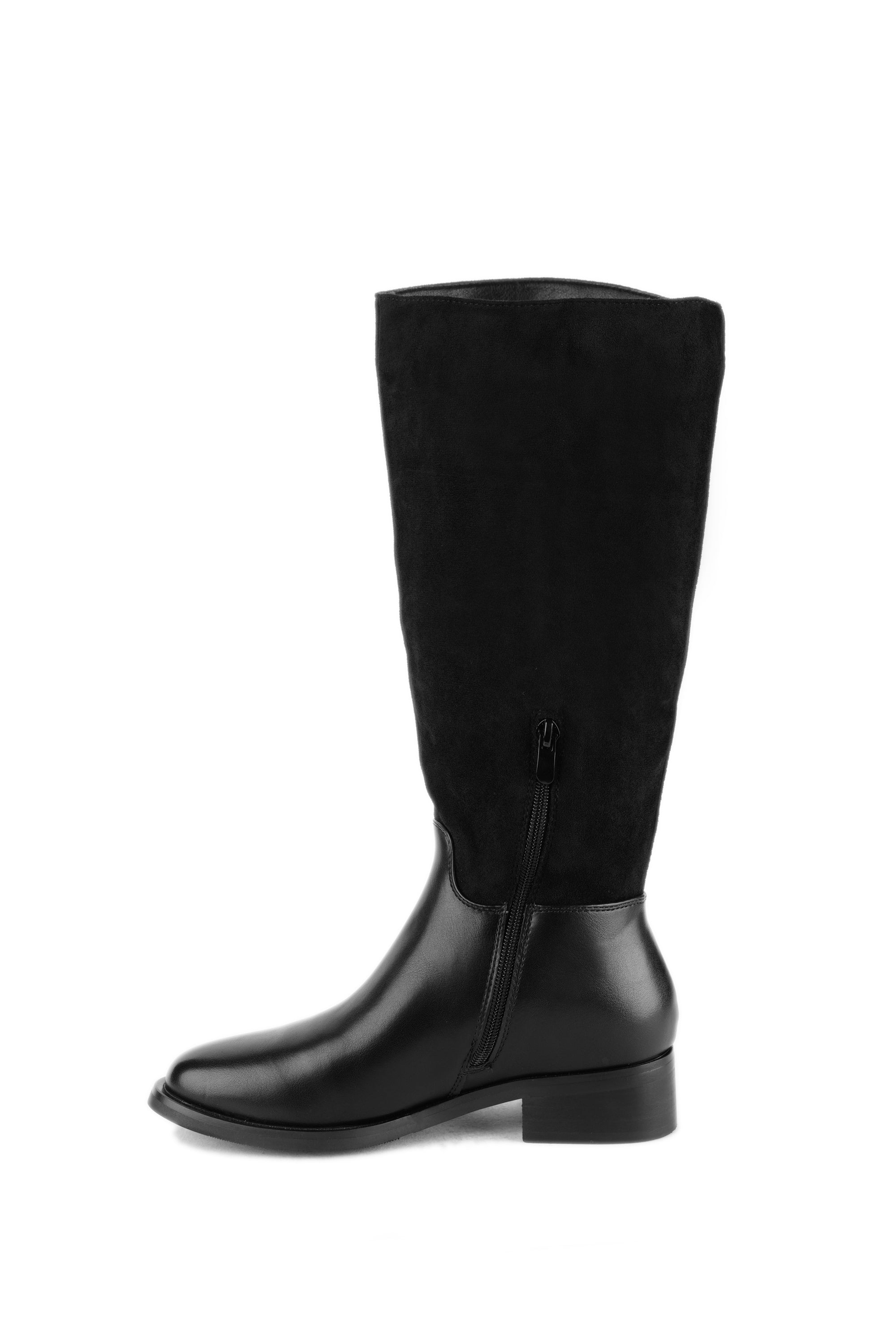 Code No.:01-5592 Under-knee boot , basic Style , Upper Suede and leather lining material, zip fastening aside , round toe , heel measures around 4 cm