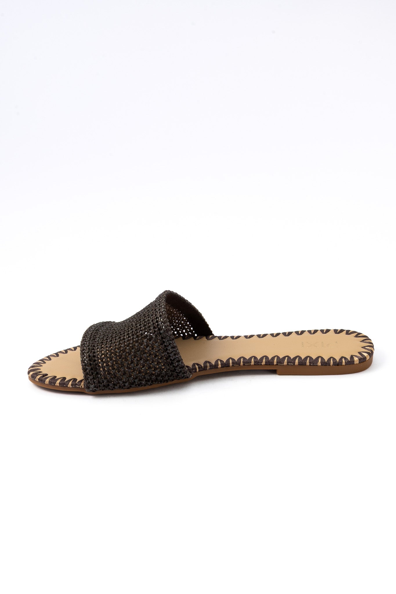 Code No.:01-6048 These slides have a smooth and shiny surface that gives them a classy look. They are easy to put on and take off, so you can save time and hassle, round open toe with a textured fabric strap . Suitable for any summer outfit .